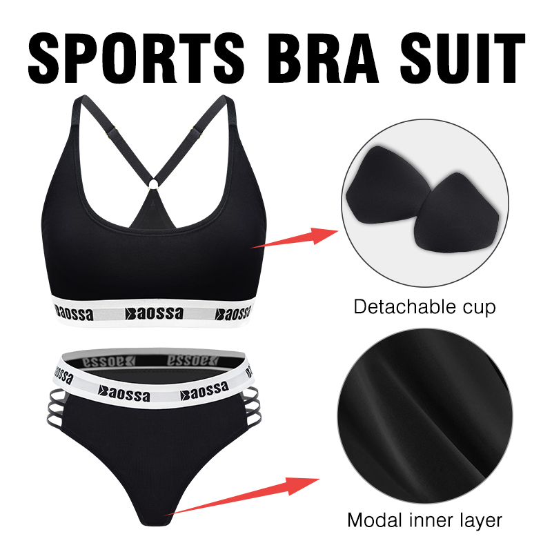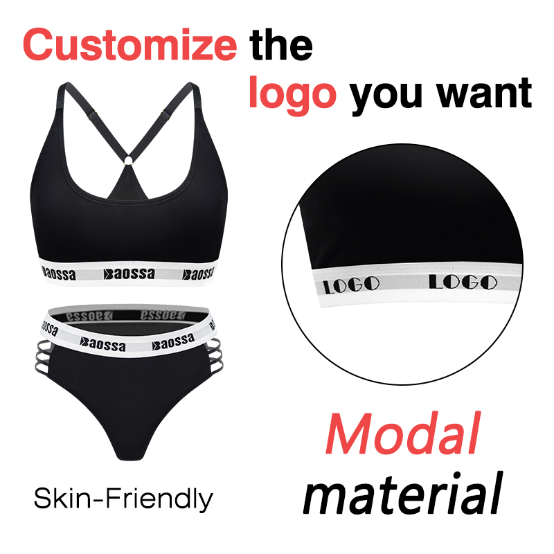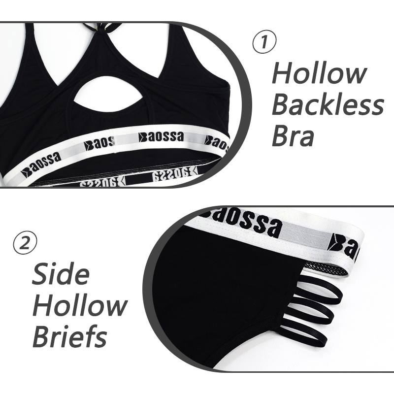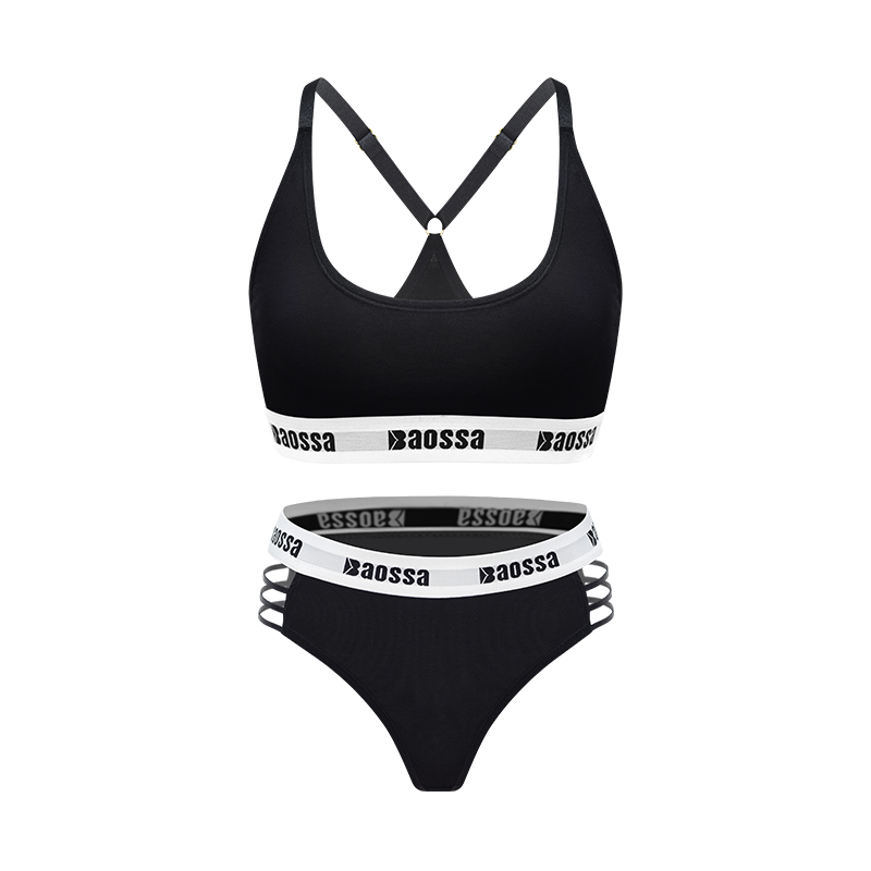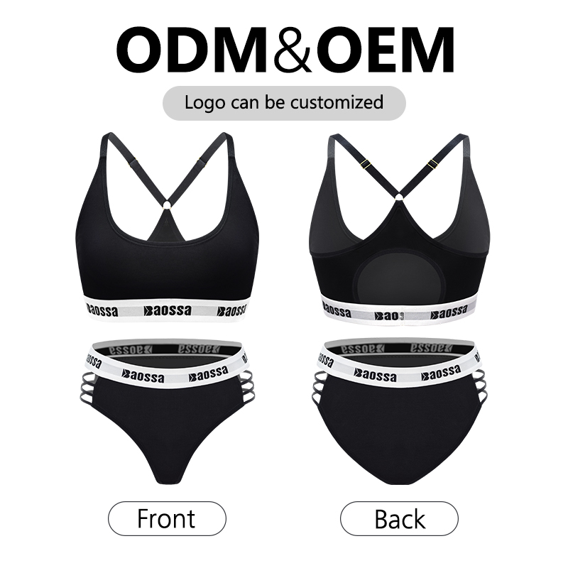 OEM sporty bra with adjustable straps customized logo hollow side briefs
